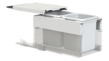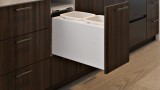 • Active Lid — Hidden from sight at the top of the bin inside the cabinet and drops down to close over the buckets when the bin is closed. The motion of the lid is synchronised with the opening and closing action of the drawer, which lets you keep your hands free to simply drop waste into the bin.