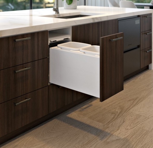 • Push to open — compatible with Blum Servodrive (electronic push to open) and Blum Tip-on-blumotion (manual push to open) systems. Simply bump on the door front and the bin will open.