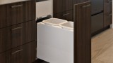 • Active Lid — Hidden from sight at the top of the bin inside the cabinet and drops down to close over the buckets when the bin is closed. The motion of the lid is synchronised with the opening and closing action of the drawer, which lets you keep your hands free to simply drop waste into the bin.