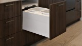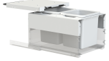 • Active Lid — Hidden from sight at the top of the bin inside the cabinet and drops down to close over the buckets when the bin is closed. The motion of the lid is synchronised with the opening and closing action of the drawer, which lets you keep your hands free to simply drop waste into the bin.