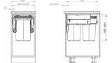 *Bench Overhang Clearance - The CR400-220 has been designed with over extension drawer runners which allow for a bench overhang of up to 40mm, allowing the back bucket to come clear independent of the front bucket. If more bench overhang clearance is required, please mount the bin lower in the cabinet.