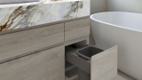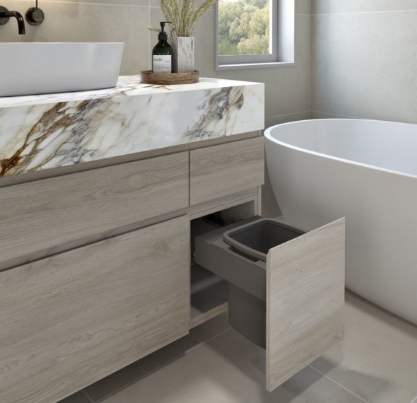 • Push to open — compatible with electronic push to open systems (warranted to work with Blum or Grass systems), so a simple bump on the door front and the Concelo Hamper will open. See FAQ section of website for more detail.