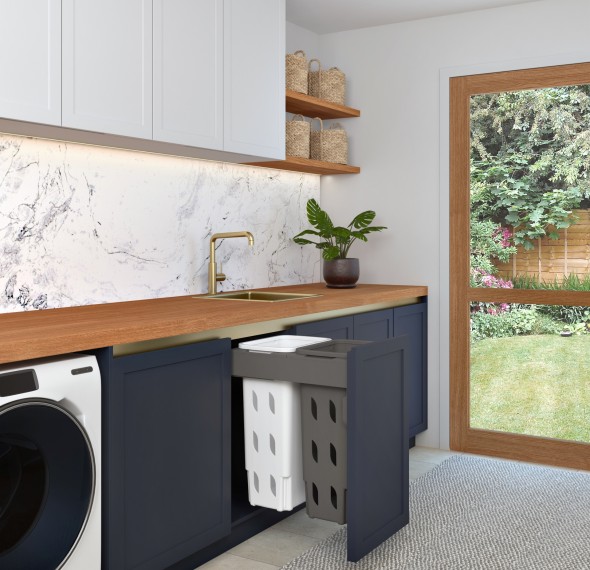 • Push to open — compatible with electronic push to open systems (warranted to work with Blum or Grass systems), so a simple bump on the door front and the Concelo Hamper will open. See FAQ section of website for more detail.