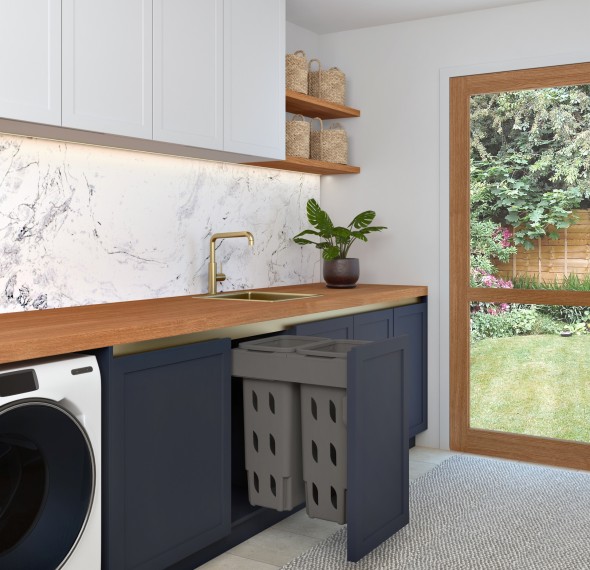 • Push to open — compatible with electronic push to open systems (warranted to work with Blum or Grass systems), so a simple bump on the door front and the Concelo Hamper will open. See FAQ section of website for more detail.